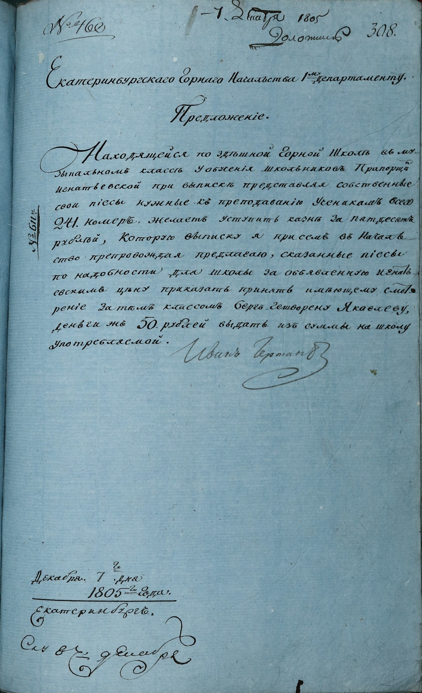 Из книги: Пешкин И. С. Аносов. Челябинск. 1987.